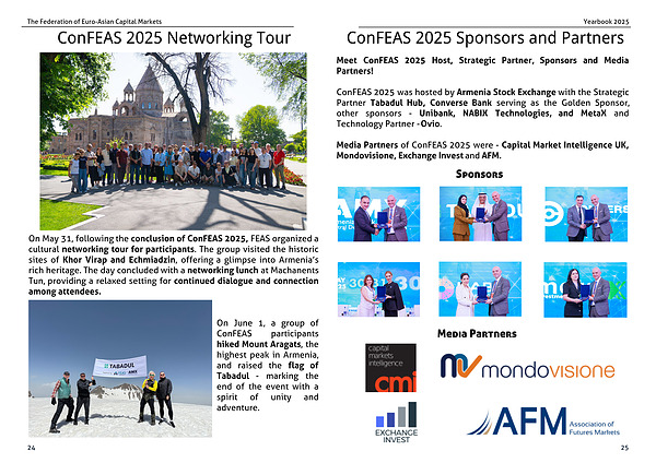 ConFEAS 2025 was hosted by Armenia Stock Exchange with the Strategic Partner Tabadul Hub, Converse Bank serving as the Golden Sponsor, other sponsors - Unibank, NABIX Technologies, and MetaX and Technology Partner - Ovio.