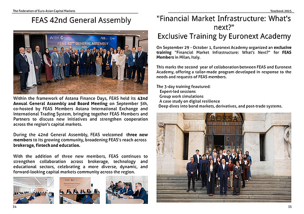 Within the framework of Astana Finance Days, FEAS held its 42nd Annual General Assembly and Board Meeting on September 5th, co-hosted by FEAS Members Astana International Exchange and International Trading System, bringing together FEAS Members and Partners to discuss new initiatives and strengthen cooperation across the region’s capital markets.