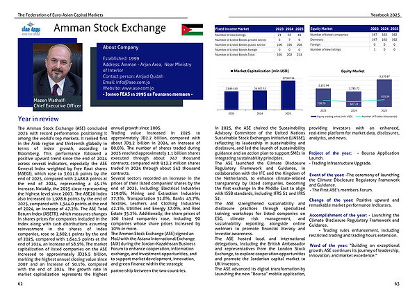 The ASE advanced its digital transformation by launching the new “Boursa” mobile application, providing investors with an enhanced, real-time platform for market data, disclosures, analytics, and news.