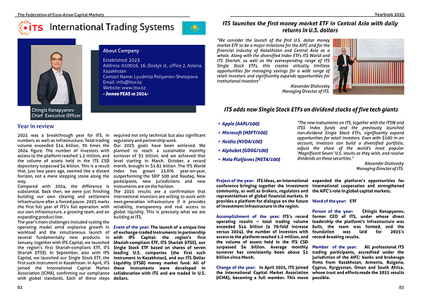 The year’s main challenges included scaling the operating model amid explosive growth in workload and the simultaneous launch of several fundamentally new products. In January, together with IPS Capital, we launched the region’s first Shariah-compliant ETF, ITS Shariah (ITSS). In September, also with IPS Capital, we launched our Single Stock ETF, the first such instrument in Kazakhstan. In April, ITS joined the International Capital Market Association (ICMA), confirming our compliance with global standards. Each of these steps required not only technical but also significant regulatory and partnership work.
