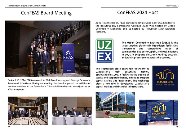 On April 18, 2024, FEAS convened its 69th Board Meeting and Strategic Session in Samarkand, Uzbekistan. During the meeting, the board approved the addition of two new members to the federation - ITS as a full member and swissQuant as an affiliate member.