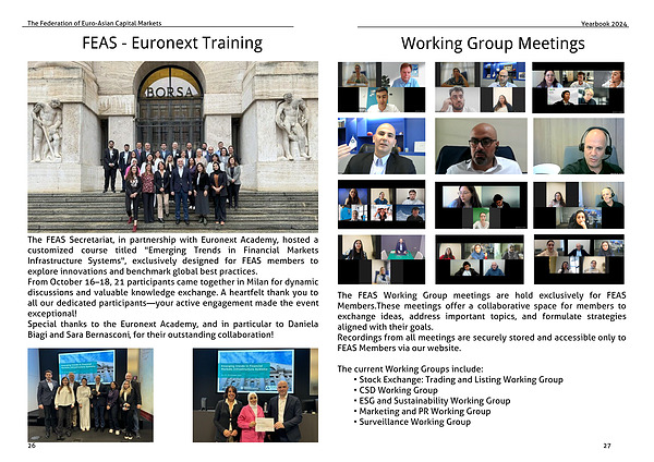 The FEAS Working Group meetings are hold exclusively for FEAS Members.These meetings offer a collaborative space for members to exchange ideas, address important topics, and formulate strategies aligned with their goals.
