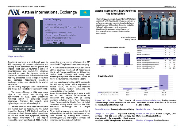The trading partnership between ADX and AIX aligns seamlessly with the AIX’s objectives and promises to enhance cross-border market integration between Kazakhstan and GCC markets. Becoming part of the Tabadul Hub introduces fresh avenues for Kazakhstani investors enriching the array of investment instruments accessible to market participants.