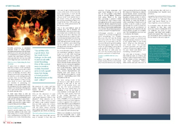 There is no right or wrong role a brand can play . We have seen brands play many roles in story ads , ranging from animating the brand to having key characters showing an interest in the brand ; people experiencing the brand ; characters going to great lengths to obtain , protect or deliver the brand ; characters talking about the brand ; or using the brand to solve a problem . A brand can be an enabler , it can be a hero , it can be the reward or it can be a character . The brand can be an advocate or the instigator , but whatever role the brand chooses , it must be a credible one . The storytelling structure has to emphasize the brand .