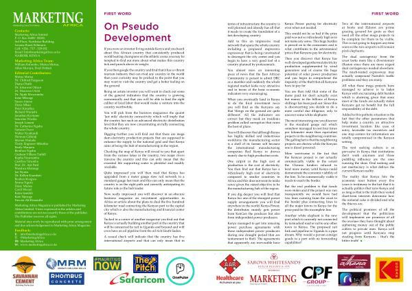 Marketing Africa Magazine is published by Marketing Africa Limited . Views expressed in the articles and contributions are not neccessarily those of the publisher . The Publisher reserves all rights .