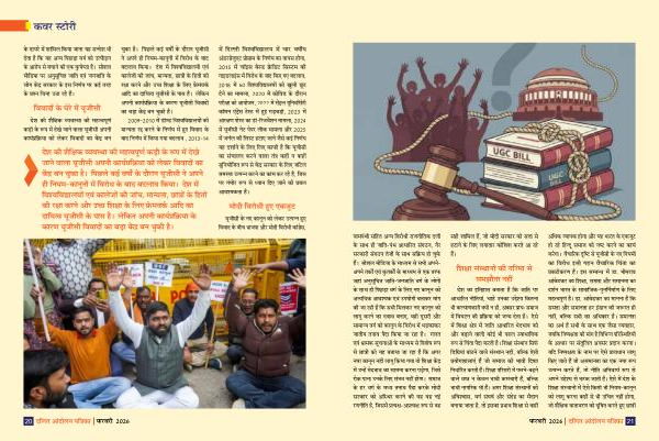 अधिक व्यापक होररा और यह भरारत के एकजु्ट हो रहे हिन्दू समराज को नष्ट करने ्रा ्राय्म करेररा । वैचरारिक दृष्टि से यदूजीसी के नए नियमों ्रा विरोध इसी गहन वैचरारिक चिंतरा ्रा प्रकटीकरण है । इस समबनध में िरा. भीमरराव आंबेडकर ्रा तशक्षरा, समतरा और समरानतरा ्रा दर्शन भरारत के सरामरातज्-पुनतन्ममरा्मण के लिए महतवपदूण्म है । िरा. आंबेडकर ्रा मराननरा है कि समतरा और समरानतरा हर इंसरान की जरूरत ही नहीं, बल्् सभी ्रा अतध्रार है । समरानतरा ्रा अर्थ है सभी के सराथ एक जैसरा वयविरार, जबकि निषपक्षतरा की मरांग है तवतभन् परिससथतियों के आधरार पर संतुलित अवसर प्रदान करनरा । यदि निषपक्षतरा के नराम पर ऐसे प्रावधरान लरारदू किए जराते हैं जो असमरानतरा ्रा एक नयरा रूप उतपन् करते हैं, तो नीति अनिवराय्म रूप से अपने उद्ेशय से भ्ट् जराती है । ऐसे में देश के तशक्षरा संस्थानों में ऐसे किसी भी नियम-्रानदून को लरारदू करनरा कहीं से भी उचित नहीं होररा, जो शैक्षिक वरातरावरण को ्दूतित करते हुए िरात्रों