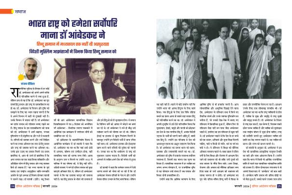 यह सही नहीं है । कहने में कोई संकोच नहीं कि उनिोंने भरारत की आत्मा हिं्दूतव के लिए ्राय्म कियरा । जब हिं्दूओं के लिए एक विधि संहितरा बनराने ्रा प्ंसग आयरा तो सबसे बड़ा सवराल हिं्दू को परारिभरातित करने ्रा थरा । डॉ. अमबेि्र ने अपनी ्दूरदृष्टि से इसे ऐसे परारिभरातित कियरा कि मुसलमरान, ईसराई, यिदू्ी और परारसी को छोि्र इस देश के सब नराररिक हिं्दू हैं, अथरा्मत विदेशी उदरम के धमगों को मरानने वराले अहिं्दू हैं, बरा्ी सब हिं्दू है । उनिोंने इस परिभरािरा से देश की आधरारभदूत एकतरा ्रा अद्भूत उ्रािरण पेश कियरा है । डॉ अमबे्िर ्रा सपनरा भरारत को मिरान, सशकत और स्वावलंबी बनराने ्रा थरा । डॉ. अमबेि्र की दृष्टि में प्जरातंत्र वयवस्था सववोतम वयवस्था है, जिसमें एक मरानव एक मूल्य ्रा विचरार है । सरामरातज् वयवस्था में हर वयसकत ्रा अपनरा अपनरा योर्रान है, पर रराजनीतिक दृष्टि से यह योर्रान तभी संभव है जब समराज और विचरार दोनों प्जरातरांत्रिक हों ।