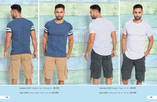 Camiseta 12287 • Algodón • Azul • Sólo talla XL • ₡ 8.500 Short 18074 • Army • Camel • 30-32- 34- 36 • ₡ 15.900