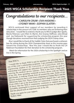 2025 WSCA Scholarship Recipient Thank Yous