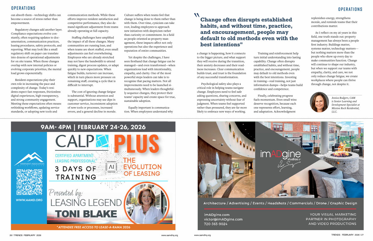 Staffing challenges have amplified the impact of all these changes. Many communities are running lean, and when teams are short staffed, even small adjustments can feel overwhelming. Employees who are already stretched may not have the bandwidth to attend training, digest process updates, or adapt quickly to new expectations. When fatigue builds, turnover can increase, which in turn places more pressure on remaining staff, creating a cycle that is difficult to interrupt.