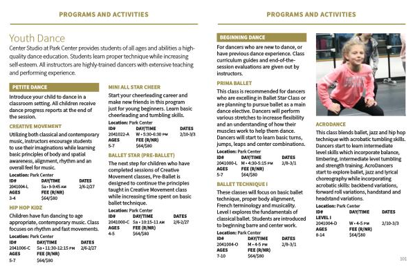 For dancers who are new to dance , or have previous dance experience . Class curriculum guides and end-of-thesession evaluations are given out by instructors .