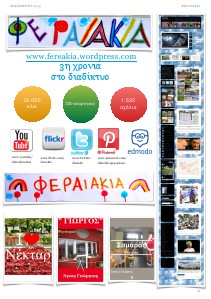 ΔΕΚΕΜΒΡΙΟΣ 2013 ΦΕΡΑΙΑΚΙΑ www.fereakia.wordpress.com 3η χρονιά στο διαδίκτυο 32.000 κλικ www.youtube/ dimeducation www.flickr.com/ fereakia 220 αναρτήσεις www.twitter/ dimedu 1.522 σχόλια www.pinterest.com/ dimedu/φεραιάκια ,1 6