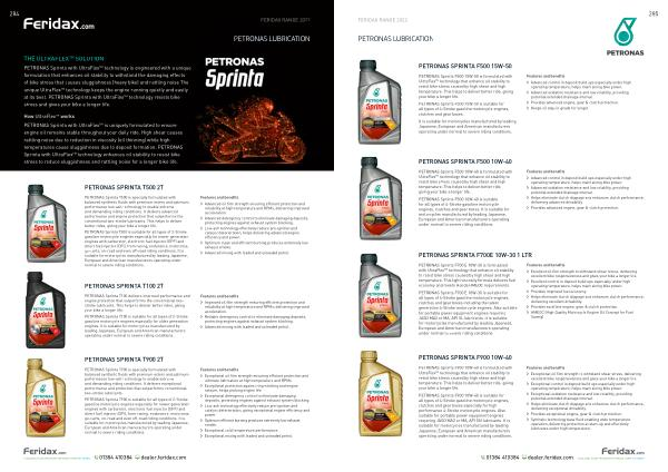 PETRONAS Sprinta F900 10W-40 is formulated with UltraFlex TM technology that enhance oil stability to resist bike stress caused by high shear and high temperature . This helps to deliver better ride , giving your bike a longer life .