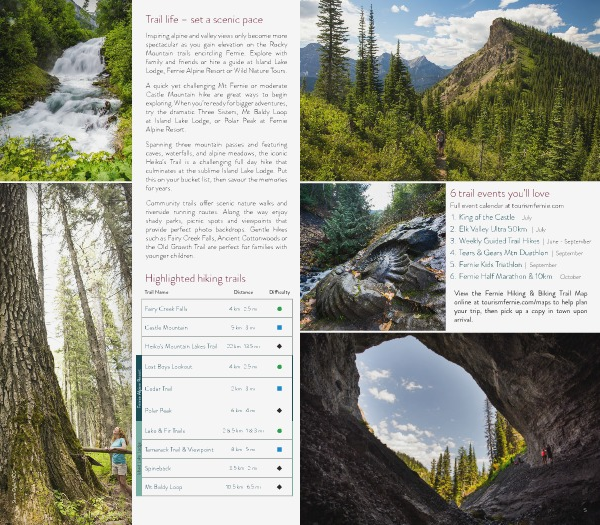 View the Fernie Hiking & Biking Trail Map online at tourismfernie.com/maps to help plan your trip, then pick up a copy in town upon arrival.