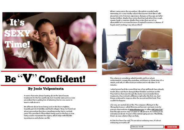 We all know about lasers being used on the face to tighten, beautify, get rid of wrinkles and build collagen. Now, I’ve found out about a procedure that does something similar, but to our lady parts! The same kind of laser that’s being used on the face, is now being used to rejuvenate the vagina, which helps with bladder incontinence and a better sex life!