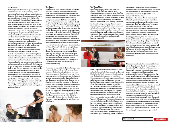 Let me explain as one male described. “Men naturally have intellectual curiosity and animal like instincts. Men’s brains are wired in such a way that curiosity is peaked by fast shiny things such as sports cars, expensive watches, or by finer things in life like a rare vintage bottle of wine. Men love sports and teams that show dominance (no guy ever rooted for synchronized swimming), so anything that they feel that they can control they become attracted to.” Now, I’m not going to say that men feel that they can control women, but they do like to control the situation when they’re in pursuit of a woman. Let’s call it the “pursuit of happiness”. He’s also not comparing women to fast shiny objects, but I guess what he’s trying to say is that men are simple. We know what we like and then we go for it. And sometimes it’s simply wanting to experience something different or new that prompts someone to cheat. Some men like variety and sometimes get bored easily, which could spell disaster for a relationship. The good news is not every man is described as above, but there are a lot of truths as it relates to the curiosity and animal like instincts (I think it’s been documented by the way).