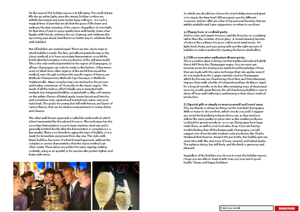 Tis the season! The holiday season is in full swing. The smell of pine fills the air, white lights pave the streets, holiday cookies are artfully decorated, and party invites keep rolling in. It is such a magical time of year that we all slow the pace of life down and embrace the true meaning of the season. Regardless of one’s faith, it’s that time of year to enjoy quality time with family, share a few laughs with friends, embrace the joy of giving, and celebrate the upcoming year ahead. And there’s no better way to celebrate than with bubbles!