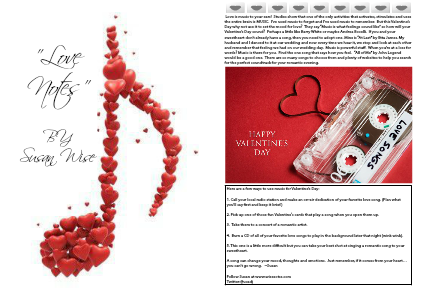 Love is music to your ears! Studies show that one of the only activities that activates, stimulates and uses the entire brain is MUSIC. I’ve used music to forget and I’ve used music to remember. But this Valentine’s Day why not use it to set the mood for love? They say “Music is what feelings sound like” so how will your Valentine’s Day sound? Perhaps a little like Barry White or maybe Andrea Bocelli. If you and your sweetheart don’t already have a song, then you need to adopt one. Mine is “At Last” by Etta James. My husband and I danced to it at our wedding and now every time we hear it, we stop and look at each other and remember that feeling we had on our wedding day. Music is powerful stuff. When you’re at a loss for words? Music is there for you. Find the one song that says how you feel. “All of Me” by John Legend would be a good one. There are so many songs to choose from and plenty of websites to help you search for the perfect soundtrack for your romantic evening.