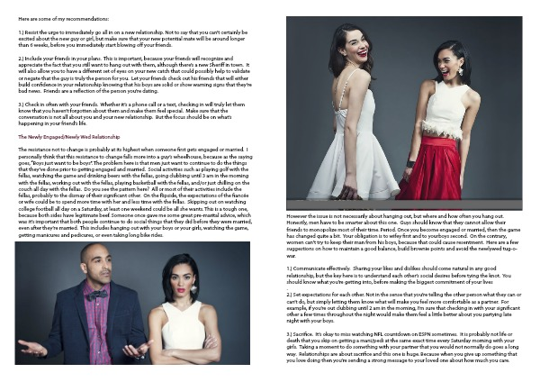 2.) Include your friends in your plans. This is important, because your friends will recognize and appreciate the fact that you still want to hang out with them, although there’s a new Sheriff in town. It will also allow you to have a different set of eyes on your new catch that could possibly help to validate or negate that the guy is truly the person for you. Let your friends check out his friends that will either build confidence in your relationship knowing that his boys are solid or show warning signs that they’re bad news. Friends are a reflection of the person you’re dating.