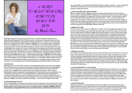 It is essential to find a clutter free, distraction free, and element free space to work. If you’re on the road, keep your file, laptop and notebook in one secure spot and work in a space that allows you to spread out and work ergonomically with little distraction. Again, poolside in the sun with loud piped in music and kids playing Marco Polo, while you stare at your friend’s frozen margarita, may not be the best space. If you work around friends, family or fellow travelers you need to respect their right to space and request them to show the same patience for your time. Setting out all your papers on the kitchen table and expecting quiet does not bode well for those around you. You may need to come up with workable schedules for “renting” space.