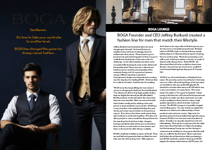 BOGA Founder and CEO Jeffrey Burkard created a fashion line for men that match their lifestyle.