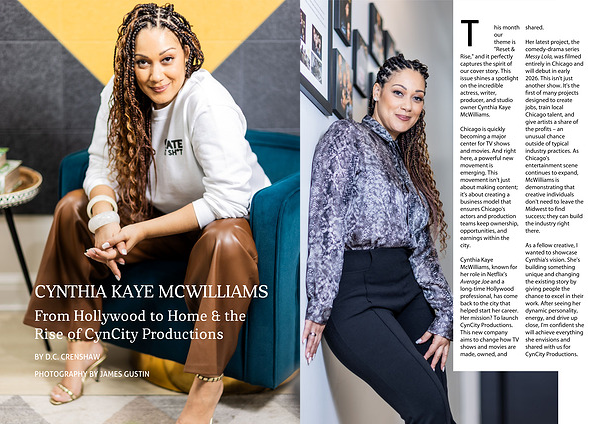 "Reset & Rise," and it perfectly captures the spirit of our cover story. This issue shines a spotlight on the incredible actress, writer, producer, and studio owner Cynthia Kaye McWilliams.
