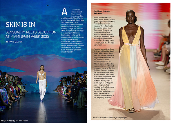 from around the world landed in Miami for the annual Swim Week Shows May 28 through June 1, the temperature rose to a feverish level both on and off the runways. Forget the art scene of Art Basel; Miami Swim Week is a visual feast of bronzed bodies, bold couture, and unapologetic sensuality. Across the city, luxury venues transformed into immersive fashion stages, where beauty, design, and hedonism collided in spectacular style. Miami Swim Week truly ignites an already hot city!