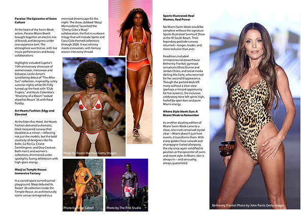 At the Eden Roc Hotel, Art Hearts Fashion delivered a dramatic, black-lacquered runway that doubled as a mirror—reflecting not just the models, but the bold creativity of designers like Pia Bolte, Ca Rio Ca, Cirone Swimlingerie, and Diva Couture. Both men’s and women’s collections shimmered under spotlights, fusing athleticism with high-glam energy.