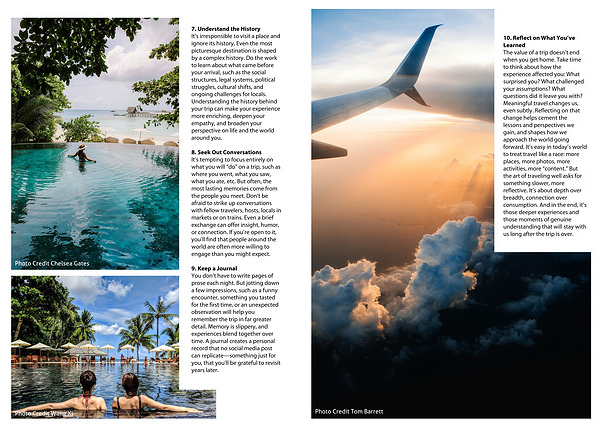 The value of a trip doesn’t end when you get home. Take time to think about how the experience affected you: What surprised you? What challenged your assumptions? What questions did it leave you with? Meaningful travel changes us, even subtly. Reflecting on that change helps cement the lessons and perspectives we gain, and shapes how we approach the world going forward. It’s easy in today’s world to treat travel like a race: more places, more photos, more activities, more “content.” But the art of traveling well asks for something slower, more reflective. It’s about depth over breadth, connection over consumption. And in the end, it’s those deeper experiences and those moments of genuine understanding that will stay with us long after the trip is over.