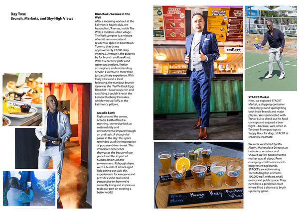 Next, we explored STACKT Market, a shipping-container retail playground spotlighting both indie brands and major players. We reconnected with Trevor Lui to check out his food concept and enjoyed a beer flight—because, well, when in Toronto! From pop-ups to Yappy Hour for dogs, STACKT is creativity incarnate.