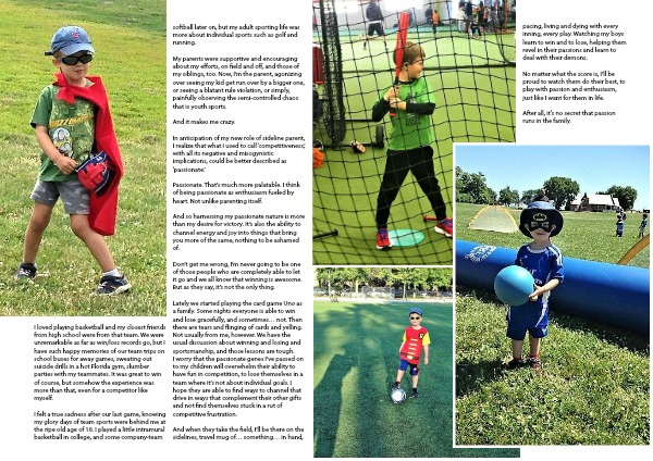 pacing, living and dying with every inning, every play. Watching my boys learn to win and to lose, helping them revel in their passions and learn to deal with their demons.