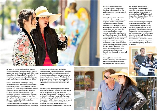 Greene’s interest for creating her own films was sparked when she made a short film to roast her husband at a birthday party. Including celebrities such as Quentin Tarantino, the Coen Brothers, Russell Crowe, Tobey McGuire, and more, Greene was hooked and said, “... then it inspired me to write the story (“Fanboy”). She then found writers Chester Hastings and R. Dean McCreary with whom she could collaborate, who understood her vision, and created the script.