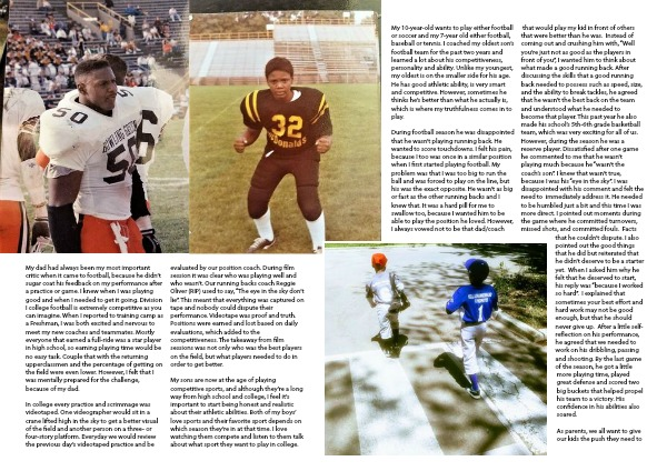 that would play my kid in front of others that were better than he was. Instead of coming out and crushing him with, “Well you’re just not as good as the players in front of you”, I wanted him to think about what made a good running back. After discussing the skills that a good running back needed to possess such as speed, size, and the ability to break tackles, he agreed that he wasn’t the best back on the team and understood what he needed to become that player. This past year he also made his school’s 5th-6th grade basketball team, which was very exciting for all of us. However, during the season he was a reserve player. Dissatisfied after one game he commented to me that he wasn’t playing much because he “wasn’t the coach’s son”. I knew that wasn’t true, because I was his “eye in the sky”. I was disappointed with his comment and felt the need to immediately address it. He needed to be humbled just a bit and this time I was more direct. I pointed out moments during the game where he committed turnovers, missed shots, and committed fouls. Facts