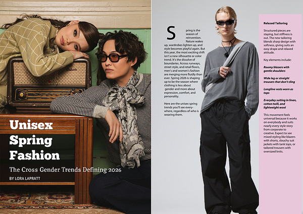 Nature wakes up, wardrobes lighten up, and style becomes playful again. But this year, the most exciting shift isn’t a new silhouette or color trend. It’s the dissolve of boundaries. Across runways, street style, and retail floors, men’s and women’s fashion