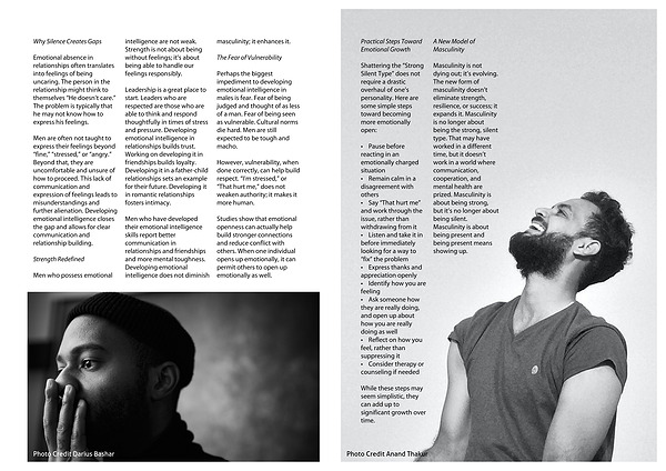 Masculinity is not dying out; it’s evolving. The new form of masculinity doesn’t eliminate strength, resilience, or success; it expands it. Masculinity is no longer about being the strong, silent type. That may have worked in a different time, but it doesn’t work in a world where communication, cooperation, and mental health are prized. Masculinity is about being strong, but it’s no longer about being silent. Masculinity is about being present and being present means showing up.