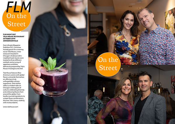 Fete Lifestyle Magazine Publisher D.C. Crenshaw hosted guests for a evening out at Tala House, a new restaurant located in Chicago’s Andersonville’s neighborhood. Guests were treated to three different cocktails and an array of appetizers and bites deliciously prepared by Tala's House mixologist and chef.
