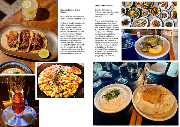 Costera Cocina brings authentic Tulum flavors with a modern twist. Their Mini Trompo Al Pastor tacos are a standout, featuring dried chile marinated pork and pineapple that gets flambéed tableside. Their street corn pasta dish is so unique and delicious that you won’t find another dish like it anywhere else. The atmosphere is vibrant, and the service is great. After 11pm on Fridays and Saturdays, there is a DJ and nightclub vibe with bottle service available.
