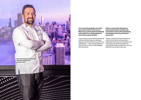 What are some of the challenges in balancing the logistics of large-scale humanitarian events while maintaining the integrity and artistry of the food experience?