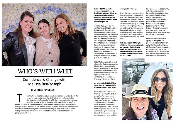 rooted in beauty, wellness, fitness, and lifestyle. At the heart of her work is a belief that confidence comes from how we show up every day — whether through fashion, wellness, or the way we share our stories. Melissa and her team help clients step into the spotlight authentically, blending strategy with heart to create lasting connections. I’m thrilled to be able to feature her voice and to share her perspective with you.