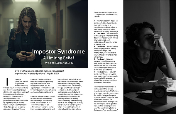 mental condition, but rather a phenomenon where you doubt your skills and your abilities. It is a persistent feeling of incompetence despite your education, experience and accomplishments. This phenomenon was first described by Psychologists Dr. Pauline Clance and Dr. Suzanne Imes in 1978. According to a leading researcher Dr. Valerie Young, Impostor Phenomenon was originally thought to primarily impact accomplished and successful women. But this experience is commonly shared by individuals in many professions and levels of accomplishment.