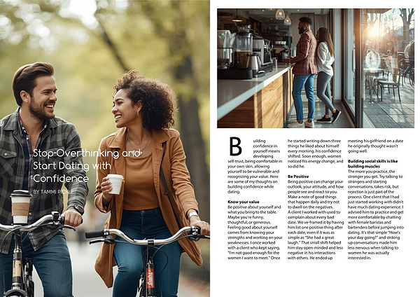 Be positive about yourself and what you bring to the table. Maybe you’re funny, thoughtful, or generous. Feeling good about yourself comes from knowing your strengths and working on your weaknesses. I once worked with a client who kept saying, “I’m not good enough for the women I want to meet.” Once he started writing down three things he liked about himself every morning, his confidence shifted. Soon enough, women noticed his energy change, and so did he.