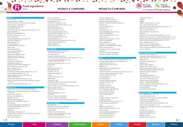 INTAN CHEMICAL, PT KANCOR INGREDIENTS LIMITED KH ROBERTS PTE. LTD. MATRIX FINE SCIENCES PVT. LTD. NANCHANG DUOMEI BIO-TECH CO., LTD. PLANT LIPIDS( P) LTD. PRINOVA EUROPE LIMITED QUALITY FLAVORS( PVT.) LTD. RICCA PEACOCK ASIA SDN. BHD. SHANXI ORIENT INDUSTRAIL CO., LTD. SINERGI MULTI LESTARINDO, PT SYNTHITE INDUSTRIES PRIVATE LTD. TEGAR INTI SENTOSA, PT. TIANJIN TANGCHAO FOODS INDUSTRY CO., LTD. TIGAKA DISTRINDO PERKASA, PT TRIPPER NATURE, PT. VIDYA HERBS PVT. LTD.