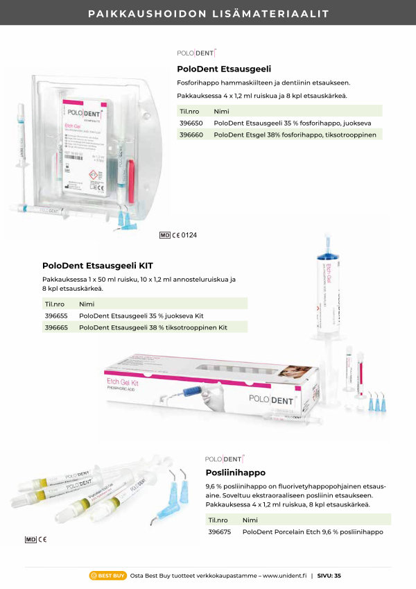 Til. nro Nimi 396650 PoloDent Etsausgeeli 35 % fosforihappo, juokseva 396660 PoloDent Etsgel 38 % fosforihappo, tiksotrooppinen