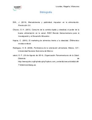 B.M., J. (2014). Mercadotecnia y publicidad, impactan en la alimentación.