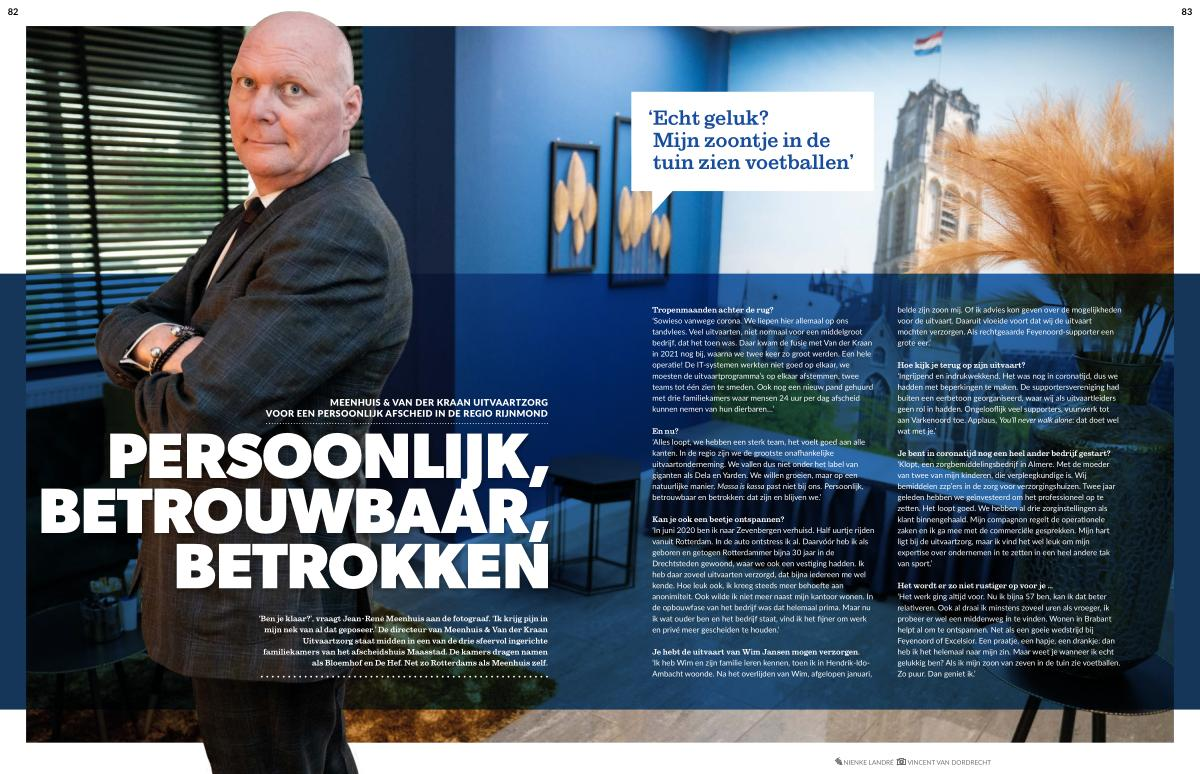 Je bent in coronatijd nog een heel ander bedrijf gestart ? ‘ Klopt , een zorgbemiddelingsbedrijf in Almere . Met de moeder van twee van mijn kinderen , die verpleegkundige is . Wij bemiddelen zzp ’ ers in de zorg voor verzorgingshuizen . Twee jaar geleden hebben we geïnvesteerd om het professioneel op te zetten . Het loopt goed . We hebben al drie zorginstellingen als klant binnengehaald . Mijn compagnon regelt de operationele zaken en ik ga mee met de commerciële gesprekken . Mijn hart ligt bij de uitvaartzorg , maar ik vind het wel leuk om mijn expertise over ondernemen in te zetten in een heel andere tak van sport .’