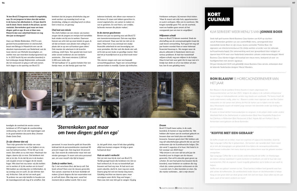 Droom Brut172 heeft twee suites , in de oude boerderij . Er komen er nog veertien bij . ‘ We hebben alle huizen aan de overkant gekocht en bouwen daar een hotel plus een lekkere brasserie . Gewoon goed eten ! We hebben ook nog vijf vakantiehuisjes gekocht die we aan het ombouwen zijn tot Scandinavische lodges . Die zijn vanaf 1 augustus al te huur . Het hotel is in het voorjaar van 2024 klaar .’ ‘ Mijn droom is om over vijf tot acht jaar de boerderij over te dragen aan de nieuwe generatie . Dan wil ik educatie gaan geven op scholen . En een heel grote kas bouwen bij de boerderij , waar kinderen en ouderen die nog vitaal zijn , samen groenten verbouwen en die ’ s avonds met z ’ n allen bereiden en eten . Op die manier verbinden … dát is mijn droom .’