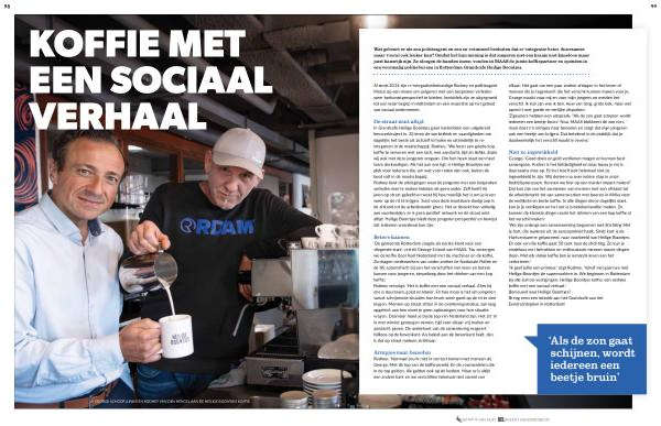 Betere kansen ‘ De gemeente Rotterdam zorgde als eerste klant voor een vliegende start ’, vertelt George Schoof van MAAS . ‘ Nu verzorgen we de koffie door heel Nederland met de machines en de koffie . Zo dragen medewerkers van onder andere de Nationale Politie en de NS automatisch bij aan het verschaffen van meer en betere kansen voor jongeren , simpelweg door het drinken van een kop koffie .’ Rodney vervolgt : ‘ Het is koffie met een sociaal verhaal . Alles bij ons is duurzaam , goed en lekker . En hoe mooi is het om jongeren vanuit schrijnende situaties hun leven weer goed op de rit te zien krijgen . Mensen op straat zitten in de overlevingsmodus , zijn laag opgeleid ; aan hen moet je geen oplossingen voor hun situatie vragen . Daarvoor moet je bij de top van Nederland zijn . Het zit ‘ m in met minder genoegen nemen , tijd voor elkaar vrij maken en aandacht geven . De onderkant van de samenleving reageert feilloos op de bovenkant . Als beleid aan de bovenkant faalt , dan is dat op straat meteen zichtbaar .’