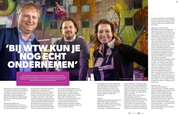 dat ook in de Benelux voor elkaar te krijgen . Daarbij was het voor mij heel belangrijk of ik dat op mijn manier kon doen , of ik de ruimte kreeg om mijn eigen visie uit te rollen ? Ja , dus ! En het gaat als een trein . Dat is me gegund geweest , zo voelt het . Door Stefan , door de collega ’ s , door WTW .’ Stefan voegt eraan toe : ‘ Het past bij ons . Risicomanagement voor M & A is dienstverlening die al langer bestond , maar vooral buiten Nederland . Het heeft heel veel toegevoegde waarde voor onze klanten ; daarom hebben we erin geïnvesteerd . We doen alles voor onze klanten als het gaat om datagedreven oplossingen op het gebied van mensen , risico en kapitaal . Is er een probleem