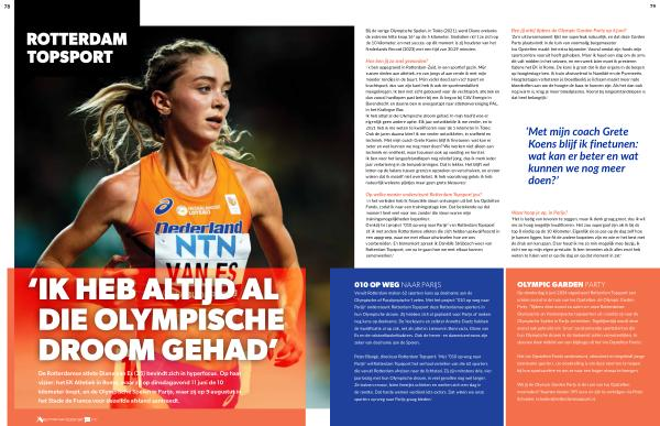 Op welke manier ondersteunt Rotterdam Topsport jou ? ‘ In het verleden heb ik financiële steun ontvangen uit het Ivo Opstelten Fonds , zodat ik naar een trainingsstage kon . Dat betekende op dat moment heel veel voor me ; zonder die steun waren mijn trainingsmogelijkheden beperkter . Dankzij het project “ 010 op weg naar Parijs ” van Rotterdam Topsport zit ik met andere Rotterdamse atleten die zich hebben gekwalificeerd in een appgroep , waar we met elkaar uitwisselen hoe we ons voorbereiden . En binnenkort spreek ik Daniëlle Strijbosch weer van Rotterdam Topsport , om na te gaan hoe we met elkaar kunnen samenwerken .’