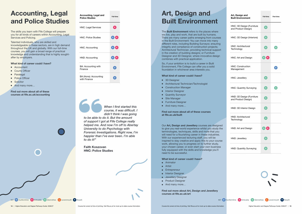 Course list correct at time of printing. Visit fife. ac. uk for most up-to-date course information Higher Education and Degree Pathways Guide: 2026 / 27 | 15